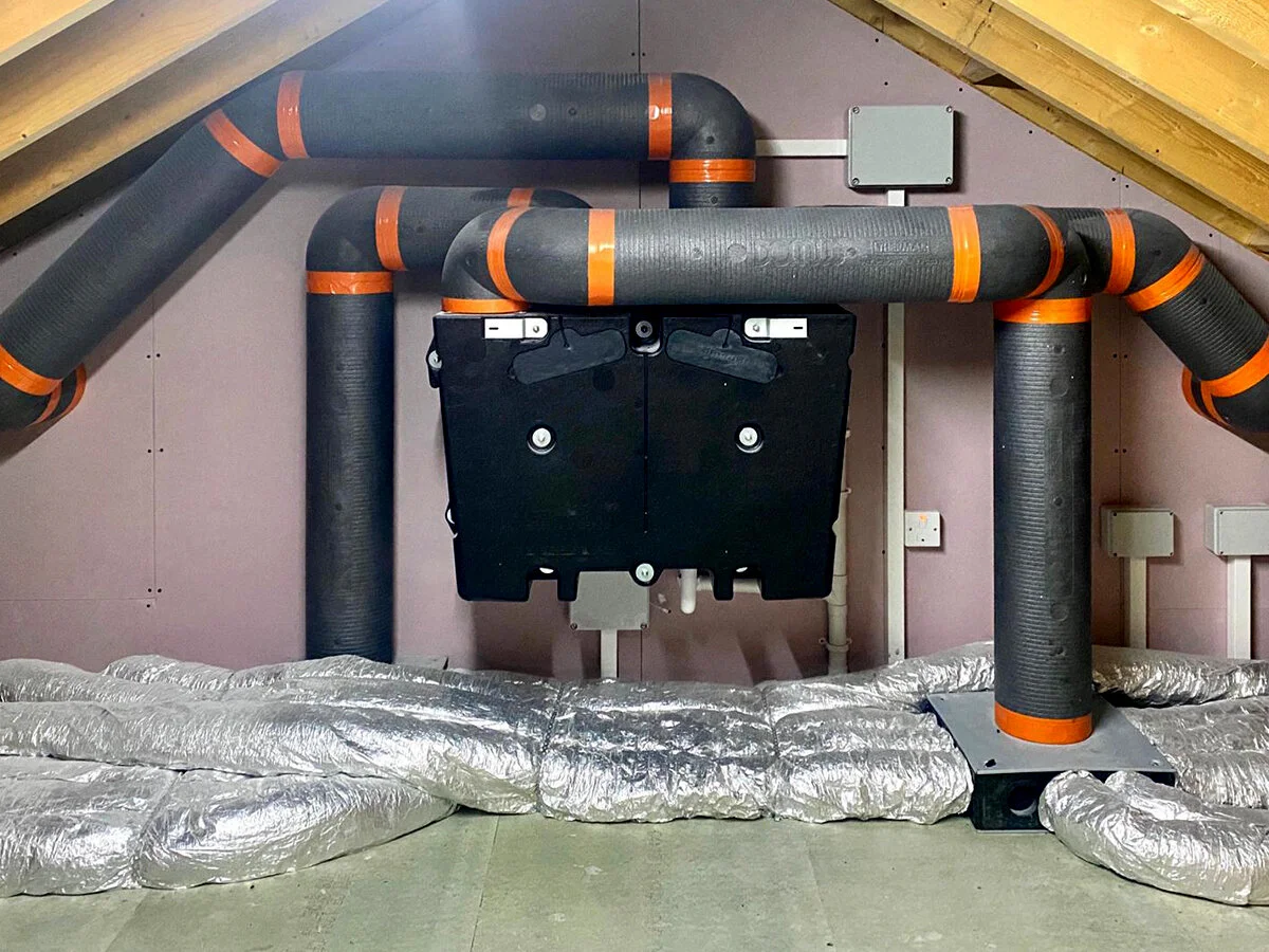 MVHR is a system that provides fresh filtered air into a building whilst retaining most of the energy that has already been used in heating the building.